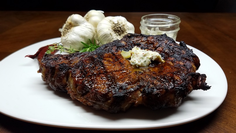 I’m a firm believer that good food doesn’t need to be complicated. If you use quality ingredients and care, you can make something amazing with only a few, well picked items. If you have any doubt, this recipe proves it. With only two ingredients, you can make an amazing ribeye that people will talk about days after the meal. It’s juicy and flavorful, with a little heat from the seasoning. We like to top it with a little roasted garlic and herb butter for a little more complex flavor, but it is by no means necessary. Serve with our super simple grilled corn, potato, or asparagus for a refined meal that took you no time at all to make!