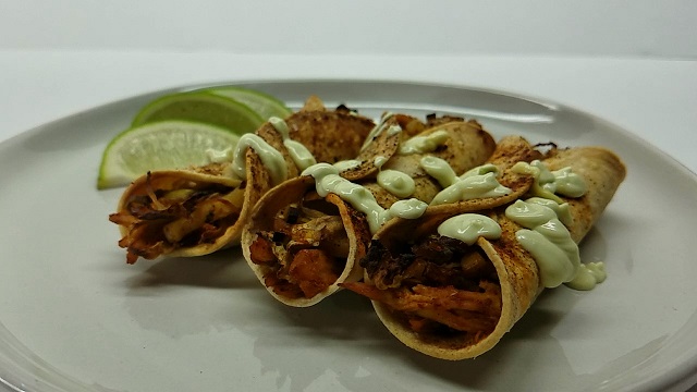 These taquitos do the trick when you are looking for a delicious and filling snack. The different flavors and textures go together perfectly (plus, it’s not bad at 199 calories for 3 taquitos). The crispy tortilla and the soft cabbage are a match made in heaven, plus the smooth, subtle taste of avocados in the cream sauce complements the spicy taco chicken.