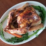 Untie turkey legs and remove items from the cavity. Slice and enjoy!